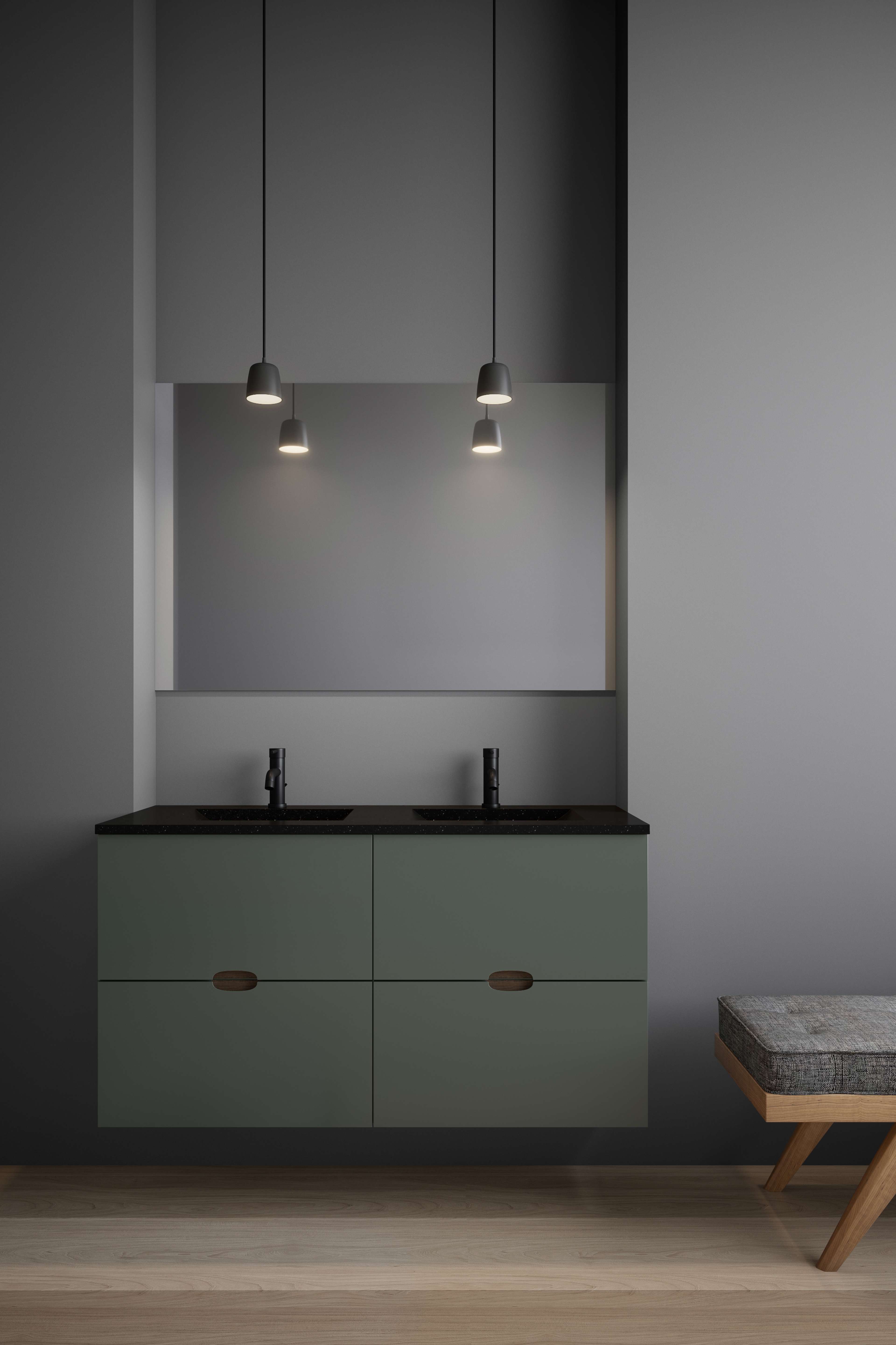 The distinctive smooth handles are inspired by smooth pebbles from Danish beaches. You can choose from six different colours, giving your bath your personal style. The material you choose for the handles brings out the color of the fronts, and if you want to change colours later on, a small update can freshen up your bath.