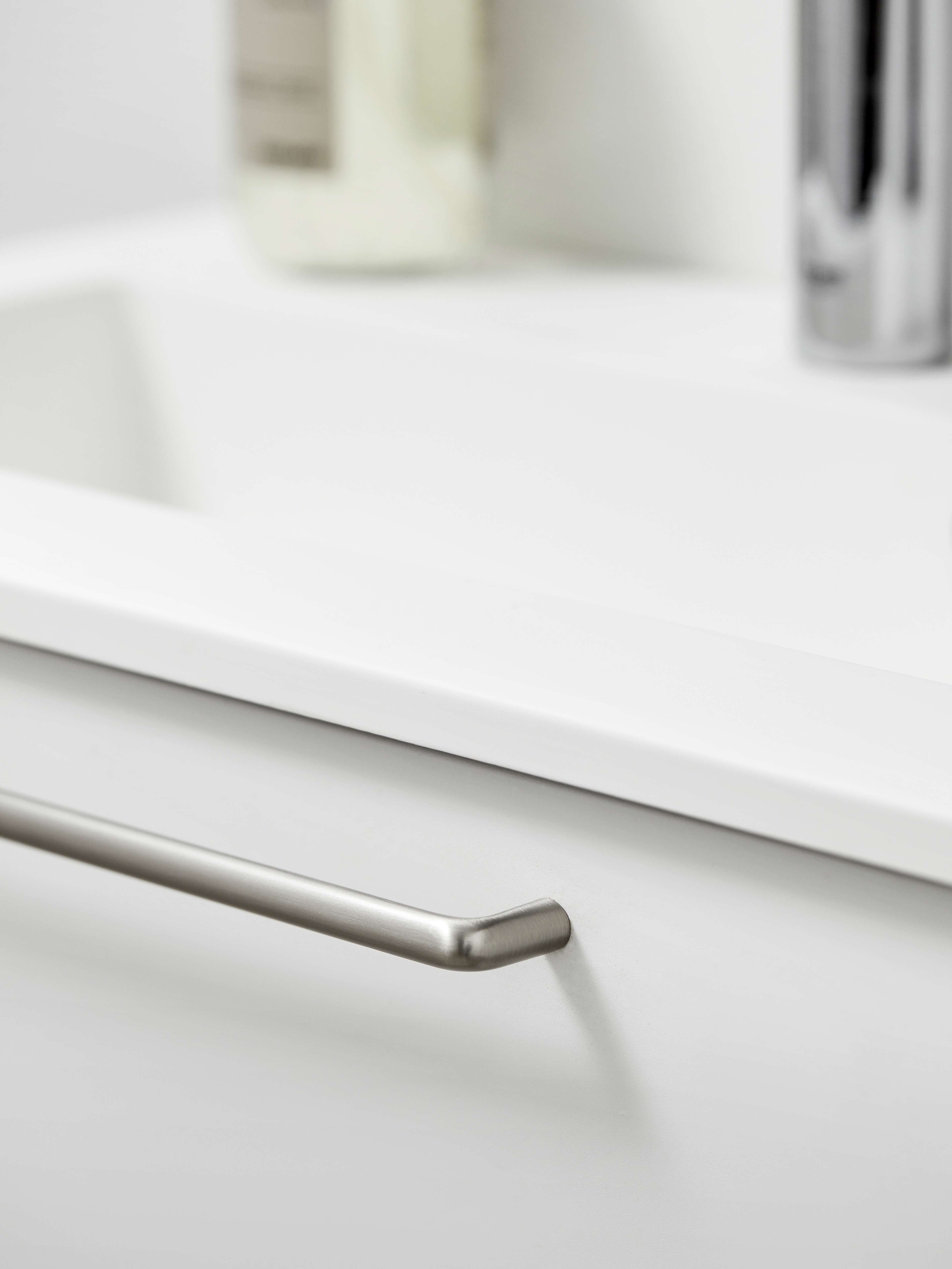 Veda will naturally lead you the simplest way to the benefits of Danish design in your bathroom. It is bright and welcoming, and its geometric beauty puts no demand on you this morning. It only reminds you that all your personal toiletries and gadgets - they are all in here ready for you. And that its minimalism is only enhanced thanks to its decorative handle – that you chose so well.