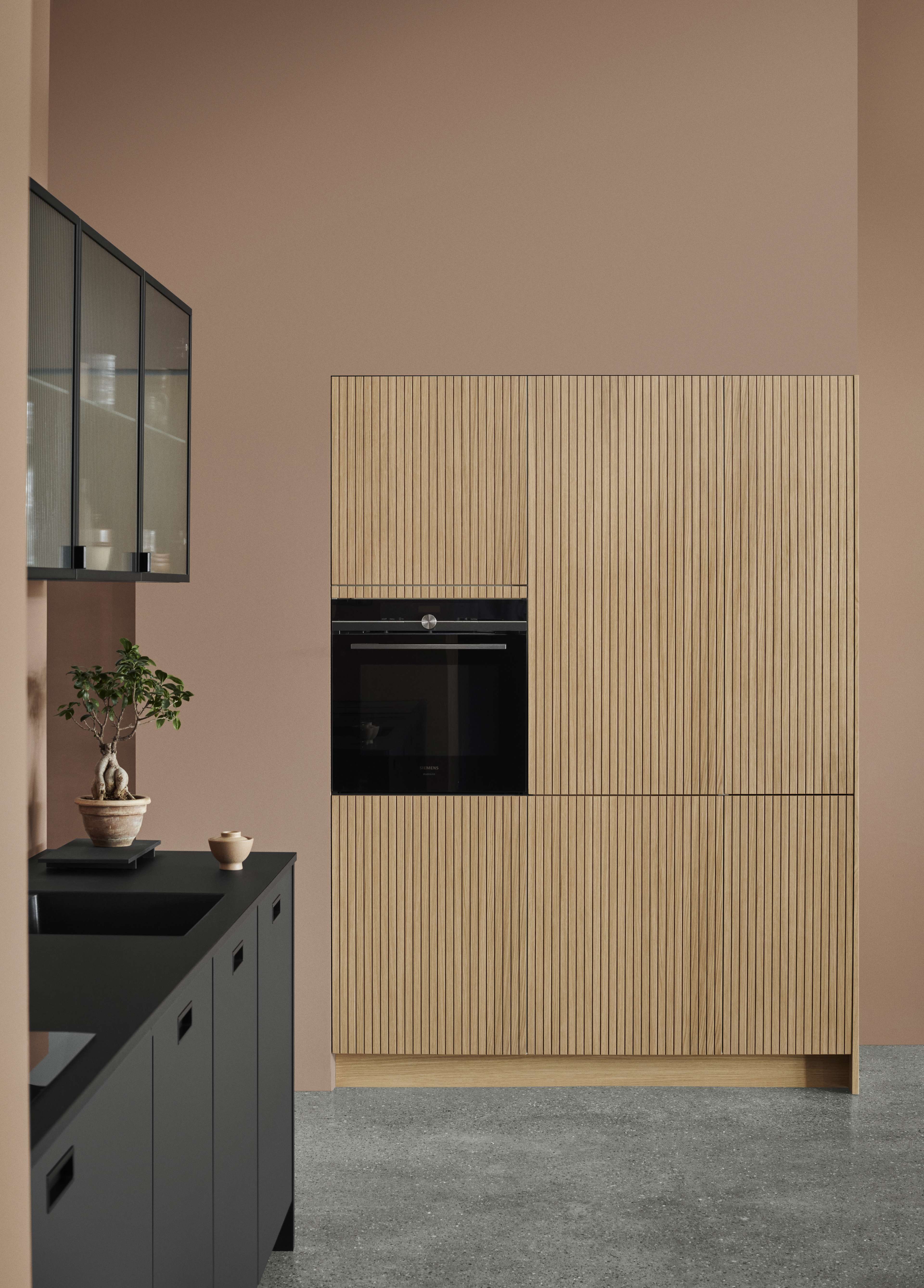Corisa light oak features gorgeous vertical lines and the warm glow of natural oak. The surface is tactile and inviting and you'll want to touch it. And that won't matter, since it's easy to clean and doesn't show fingerprints. It comes in tall cupboards or shorter ones, as well as a range of drawers. You can choose a full kitchen in Corisa or it pairs perfectly with our other designs, so you can easily put together the most beautiful combination in your home.
