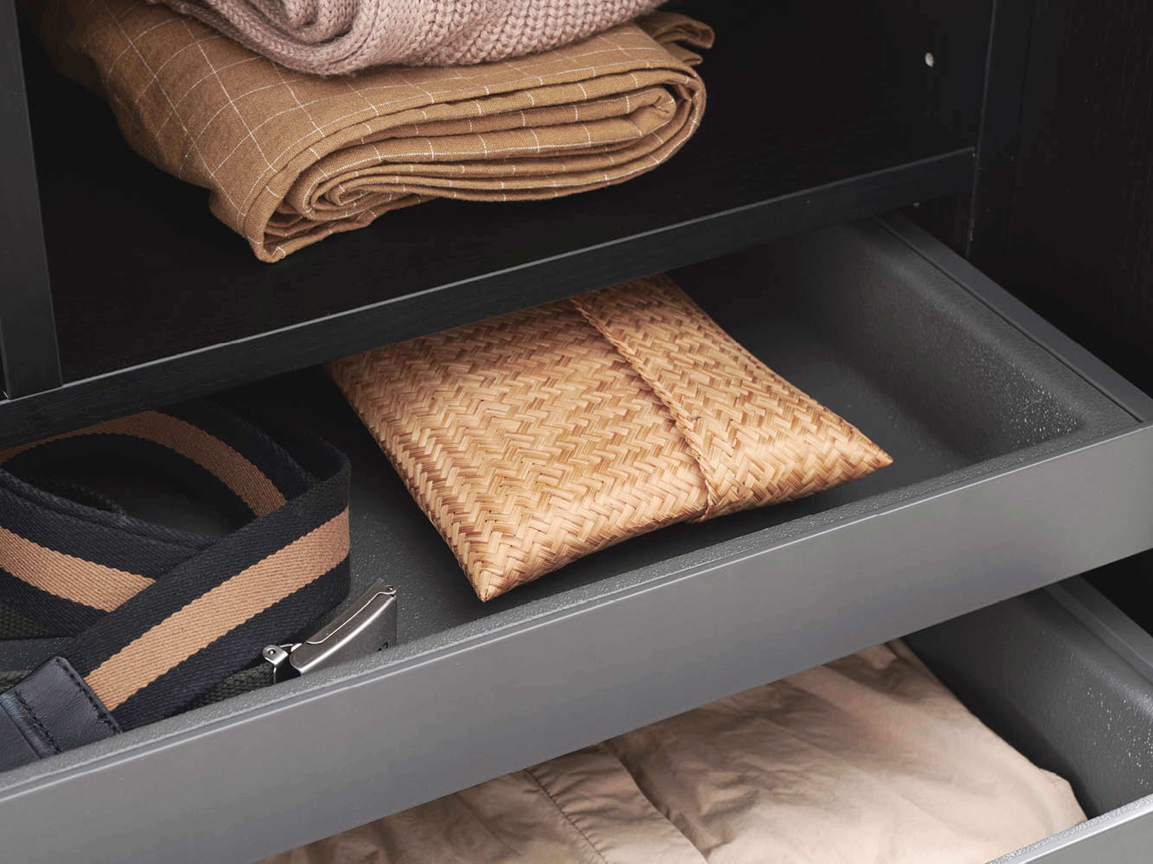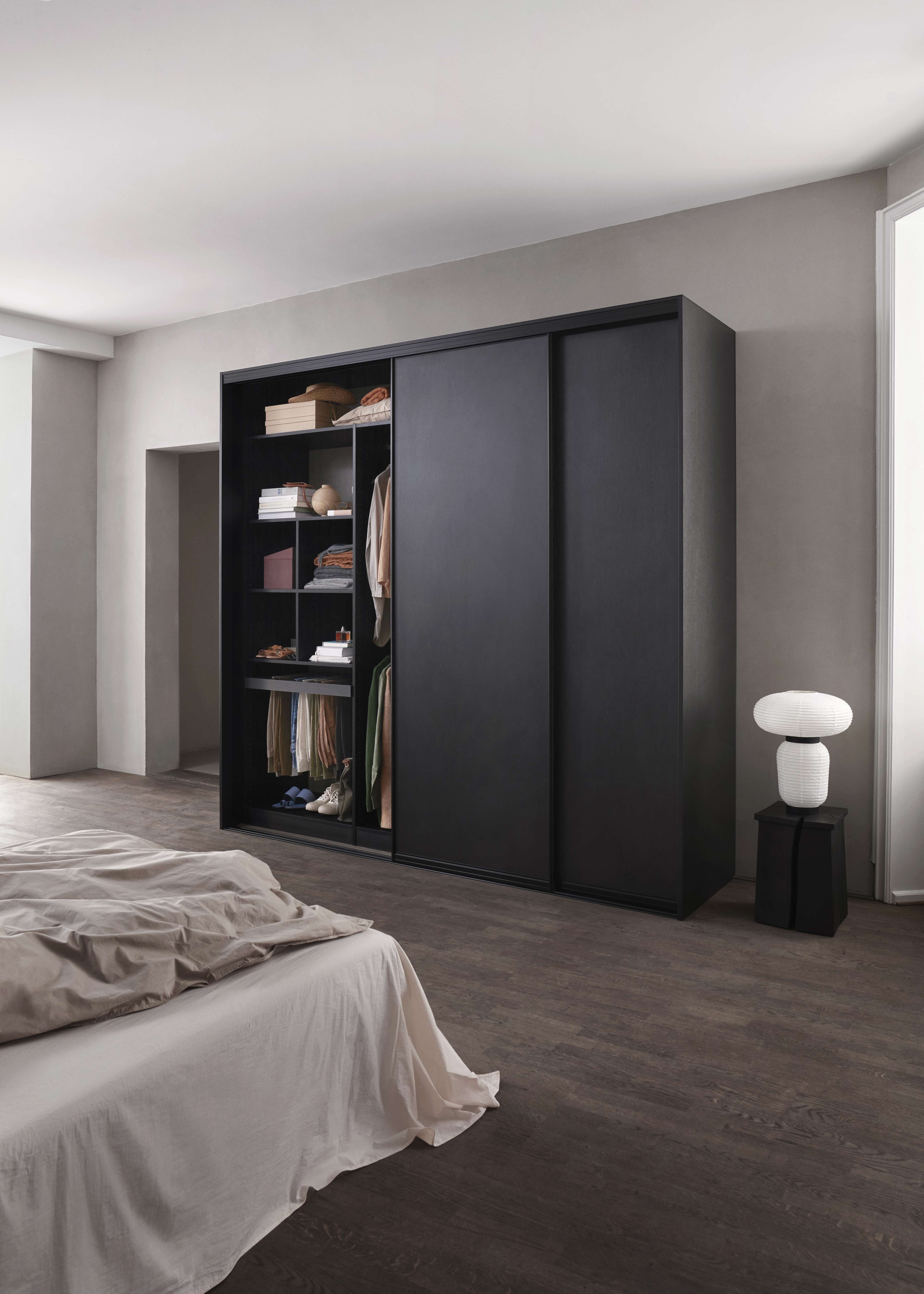 When you choose black panels, you choose an elegant look that really makes a statement in your room. And our sliding doors can handle it. This is one of 28 design variants of sliding doors that we offer - you can see all combinations of profiles, colours and panels at a Kvik store near you.